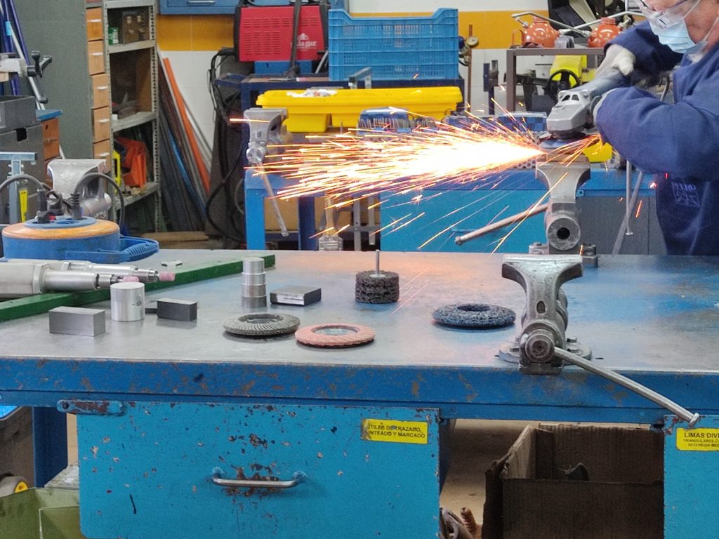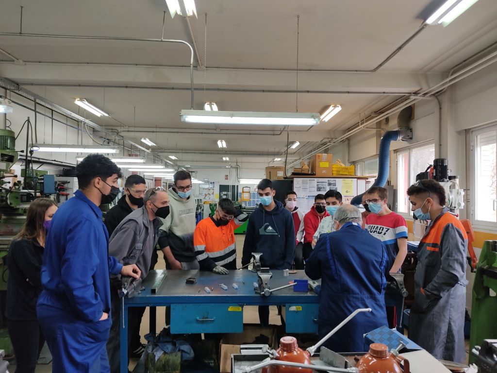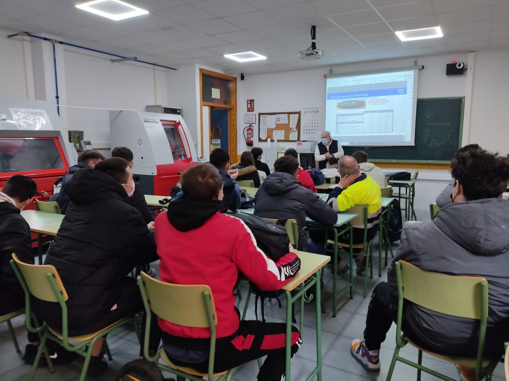 La empresa comercial PFERD ha ofrecido una charla teórico-práctica dirigida al alumnado que cursa el ciclo de grado medio de mecanizado. Se han explicado conceptos básicos sobre abrasivos como el tipo de grano, materiales, códigos, colores,… propiedades de los materiales a mecanizar, cómo funcionan las herramientas a utilizar, ejemplos prácticos y cuestiones de seguridad en el taller. En una segunda parte han realizado varias pruebas sobre distintos materiales en el talles de mecanizado. Estas pruebas se han centrado tanto en el desbastado, lijado como en el pulido de las piezas. Finalmente, se ha obtenido un acabado espejo como se puede observar en una de las fotos.