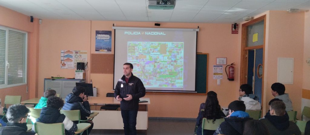Esta mañana los alumnos de 2º ESO han asistido a la charla impartida por la Policía Nacional referente a los riesgos en internet. Los alumnos más jóvenes son los más vulnerables a ser víctimas de fraudes o de posibles delitos cibernéticos y desde hace ya varios años nuestro Departamento de Orientación organiza este tipo de charlas.