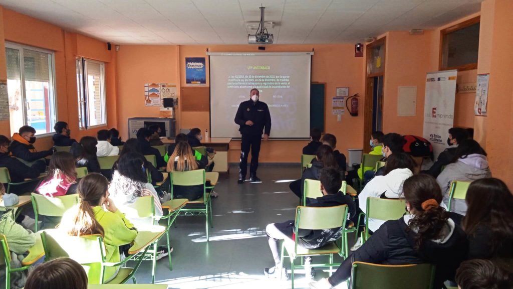 Hoy se ha impartido formación sobre prevención de drogas y alcohol dirigido al alumnado de 2º ESO. Se ha impartido por parte de la Policía Nacional quien les ha informado sobre los peligros que acarrea en la salud así como de los posibles delitos que se pueden cometer.