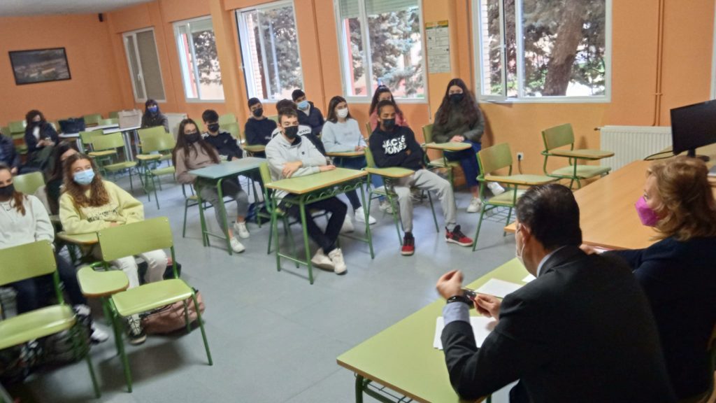 Esta mañana hemos tenido la visita de los concejales del Ayuntamiento de Calatayud, Víctor Ruíz de Diego del PSOE y también senador, así como de Ana Belén Ballano López del PAR; por cuestiones de agenda no ha podido asistir José Manuel Gimeno Castellón del PP. En esta ocasión se han contado con la visión de los concejales de nuestra ciudad para responder a preguntas sobre el tema de seguridad ciudadana que fue seleccionado por nuestros alumnos embajadores del Programa Escuela del Parlamento Europeo. Han asistido alumnado de 3º y 4º ESO que colaboran en este programa.