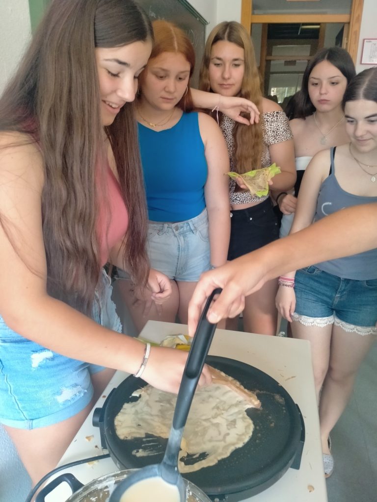 No podíamos terminar el curso sin degustar una «crêpe sucrée». Desde el Departamento de Francés hemos realizado un taller centrado esta especialidad bretona en el que el alumnado ha podido reforzar su expresión oral a través de las recetas y, por supuesto, degustar crêpes que él mismo ha preparado. Bon app ‘!