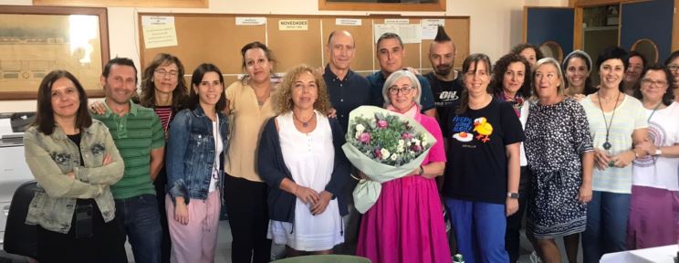 Hoy hemos recibido la visita de nuestra compañera de música, Pilar Calvo Bertolín, que se jubiló el pasado 31 de agosto. Nos hemos reunido en la sala de profesores donde nos ha invitado a un pequeño vermú y le hemos entregado un regalo de parte de sus compañeros y de un ramo de flores.