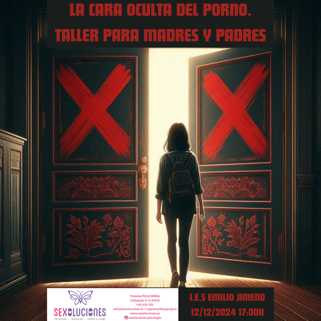 La cara oculta del porno por · 11/12/2024 Adjuntamos cartel informativo y fecha-hora de la Charla -Taller para familias y profesores sobre prevención de riesgos en relación al acceso a la pornografía en redes por adolescentes. Lugar: Aula 13 y/o enlace meet (10 minutos antes del inicio) Día: Jueves 12 de diciembre. Hora: 17:00h