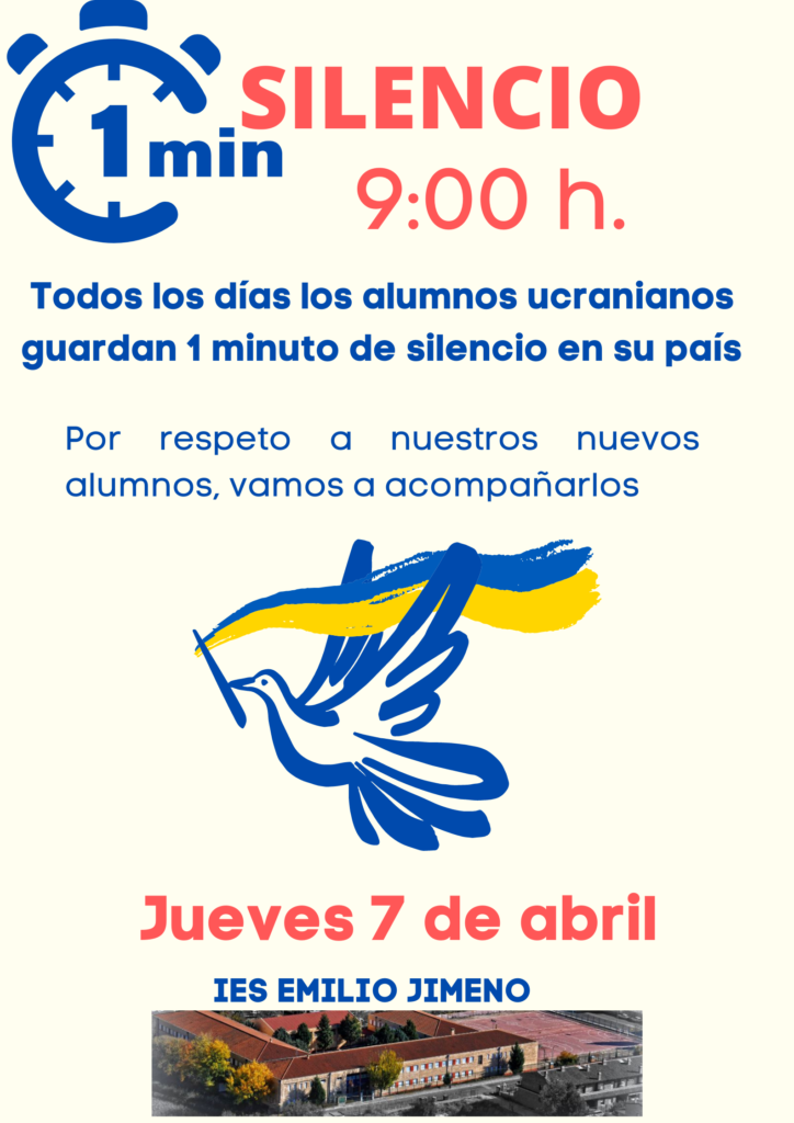 En las escuelas e instituciones de Ucrania se guarda todos los días un minuto de silencio a las 9 de la mañana con la intención de rendir homenaje a sus compatriotras y reflexionar acerca de la importancia de la paz. Desde hace varios días contamos entre nuestro alumnado con varios alumnos ucraniamos que han comenzado una nueva etapa.