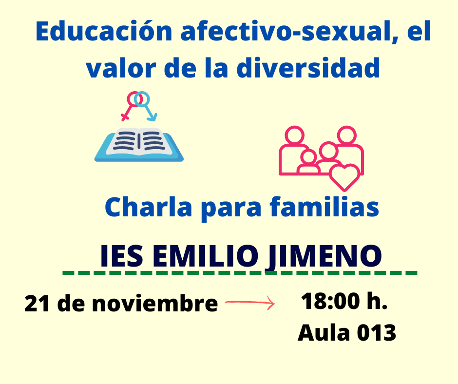 La próxima semana se van a ofrecer una serie de talleres formativos sobre educación sexual dirigido al alumnado de 2º y 4º ESO. Estos talleres van a ser impartidos por Amaltea, entidad que ya ha venido colaborando con el centro en anteriores ediciones, y que cuenta con personas formadas en el ámbito de la educación sexual.
