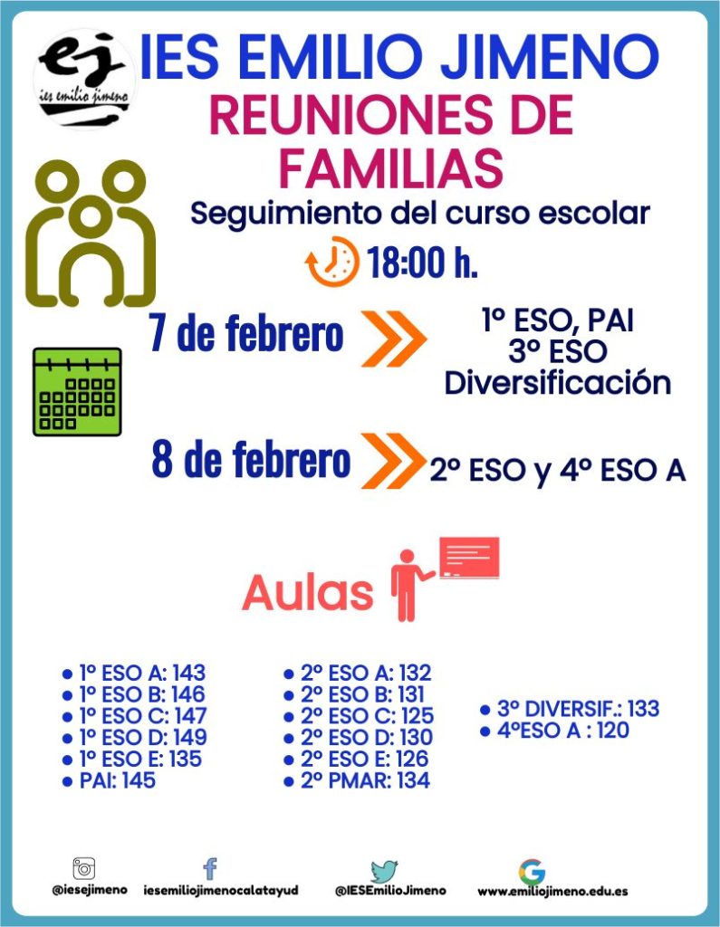Reuniones de familias ESO por · 02/02/2023 Se convocan reuniones de familias de seguimiento del curso escolar según el calendario siguiente: