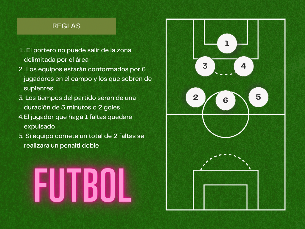Los miércoles se inscribirán en equipos de 6 a 8 personas seleccionando el deporte escogido para la semana entre 3 opciones por trimestre: fútbol, baloncesto y voleibol (1ºtrimestre). Los jueves podrán practicar esos equipos. Y los viernes se realizará torneo entre los equipos participantes con duración máxima de 5 minutos por partido.