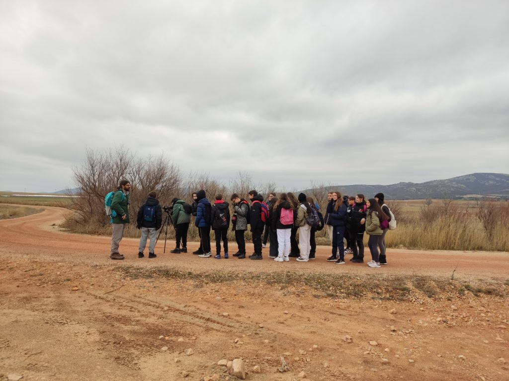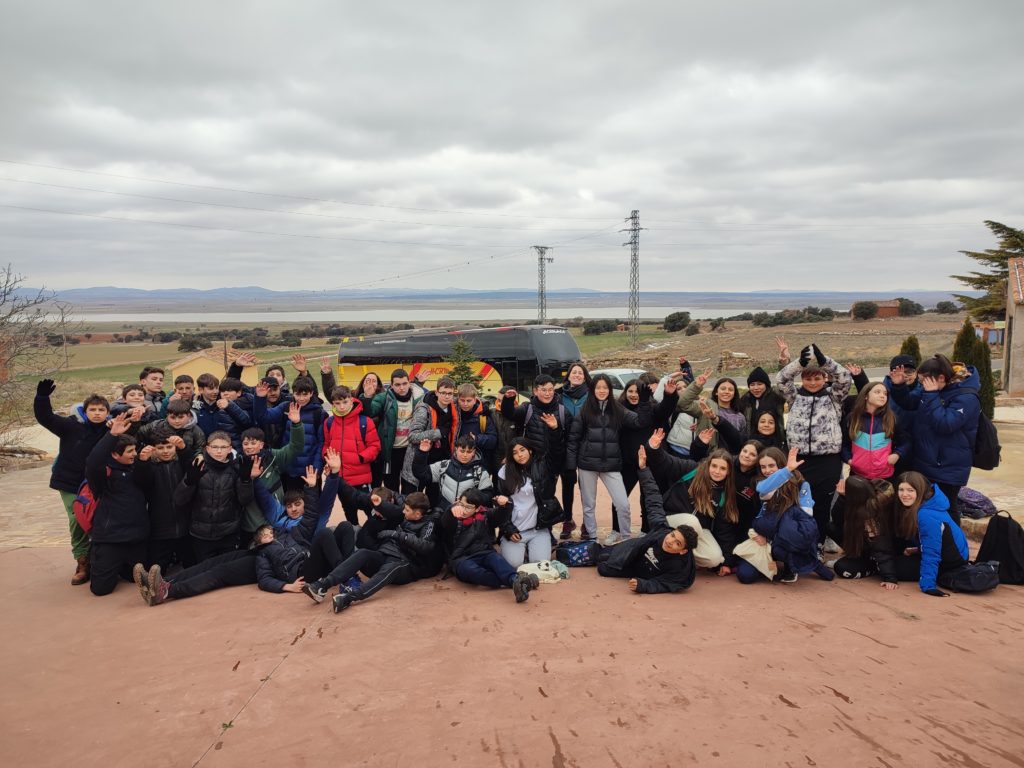 La mañana del viernes, los alumnos de 1º ESO realizaron una excursión a la Laguna de Gallocanta, organizada por el Departamento de Ciencias Naturales. Durante la jornada realizaron un recorrido por la laguna guiado por Carmina y David, los educadores responsables del Centro de Interpretación de la Reserva Natural. Les explicaron las características del entorno, así como de las aves que allí se encontraban. Hubo suerte, debido a las inclemencias del tiempo, casi 33.000 grullas aún permanecían en Gallocanta. Las pudieron observar más de cerca a través de los catalejos y prismáticos que les facilitaron. La salida la realizaron a tiempo, ya que un día después salió por fin el sol y todas las grullas continuaron su migración hacia el Norte de Europa.